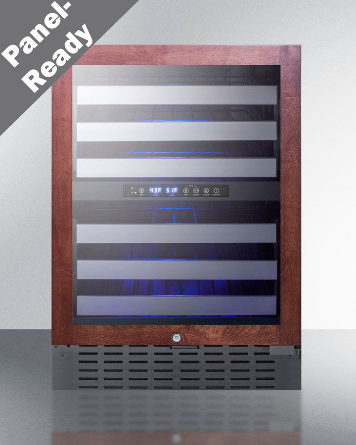 Dual Zone Built-In Wine Cellar With Panel-Ready Glass Door, Full Extension Shelves, Digital Thermostat, And Black Cabinet - SWC532BLBISTPNR Summit
