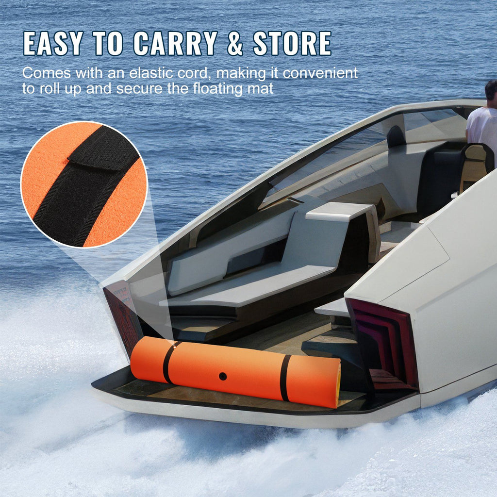 3.User-Friendly Design: Features a design with fixable positioning holes for easy securing at lakeside docks or fixed points. This large water mat comes with an elastic cord for easy rolling and securing after use, making it convenient to carry and store. The striking orange and yellow colors provide high visibility in pools, oceans, lakes, and beach areas, ensuring safety on the water. These user-friendly designs offer a more convenient floating water experience.