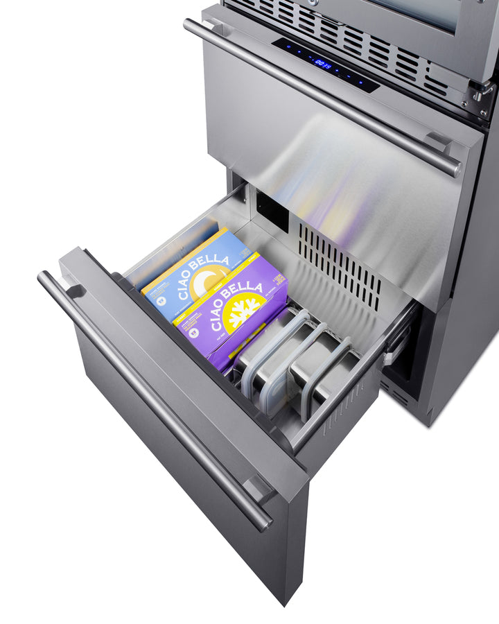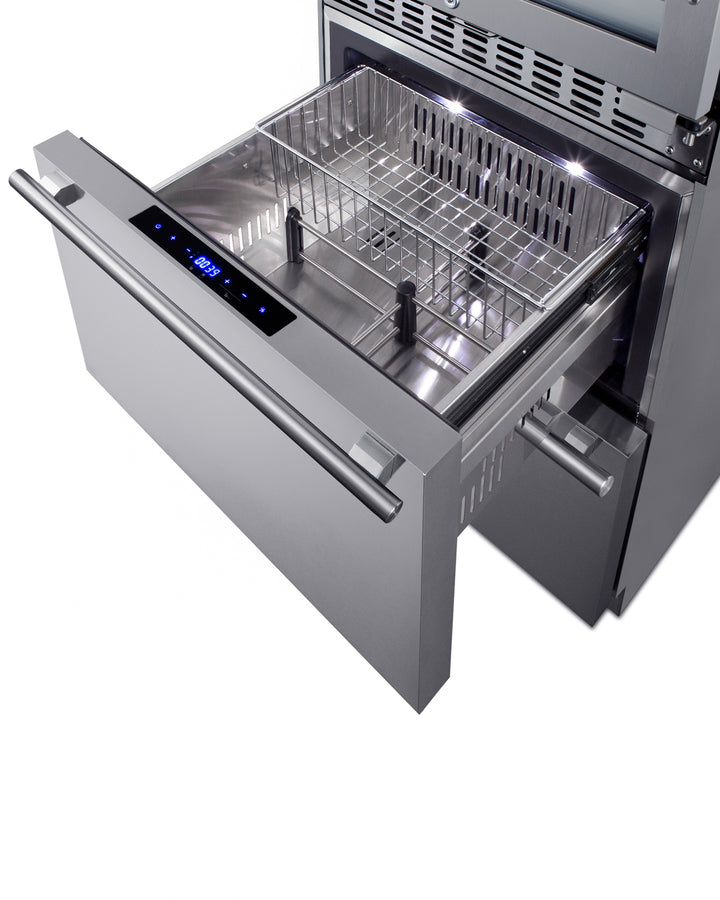 24'' Wide Combination Built-In/Freestanding Upright Dual Zone Glass Door Wine Cellar And 2-Drawer Refrigerator/Freezer In Stainless Steel - SWCDRF24 Summit