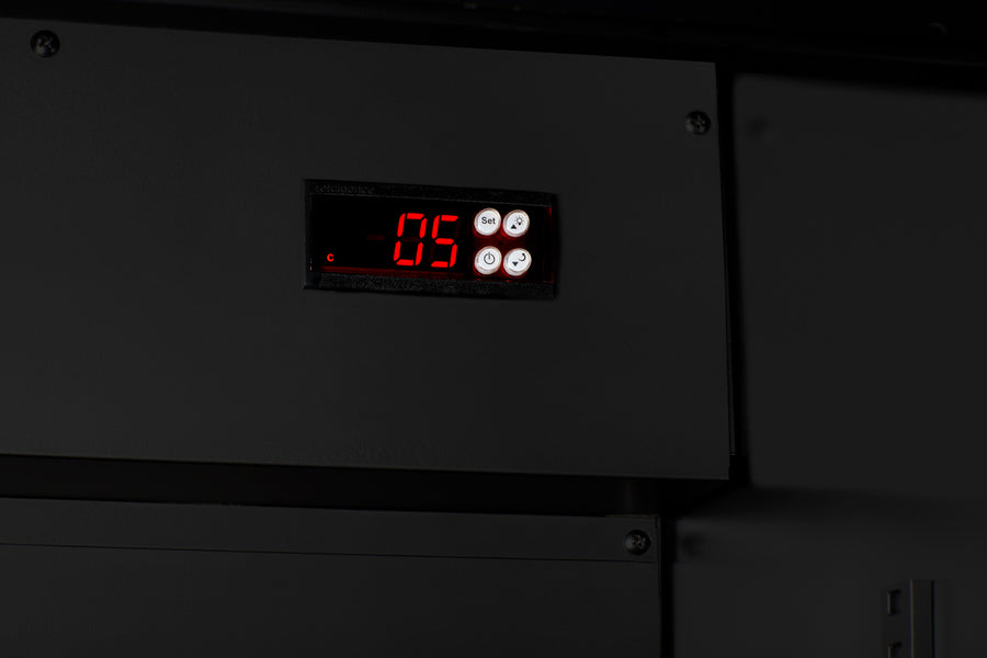 Electronic controls located on the inside for easy temperature management with a readout in Celsius