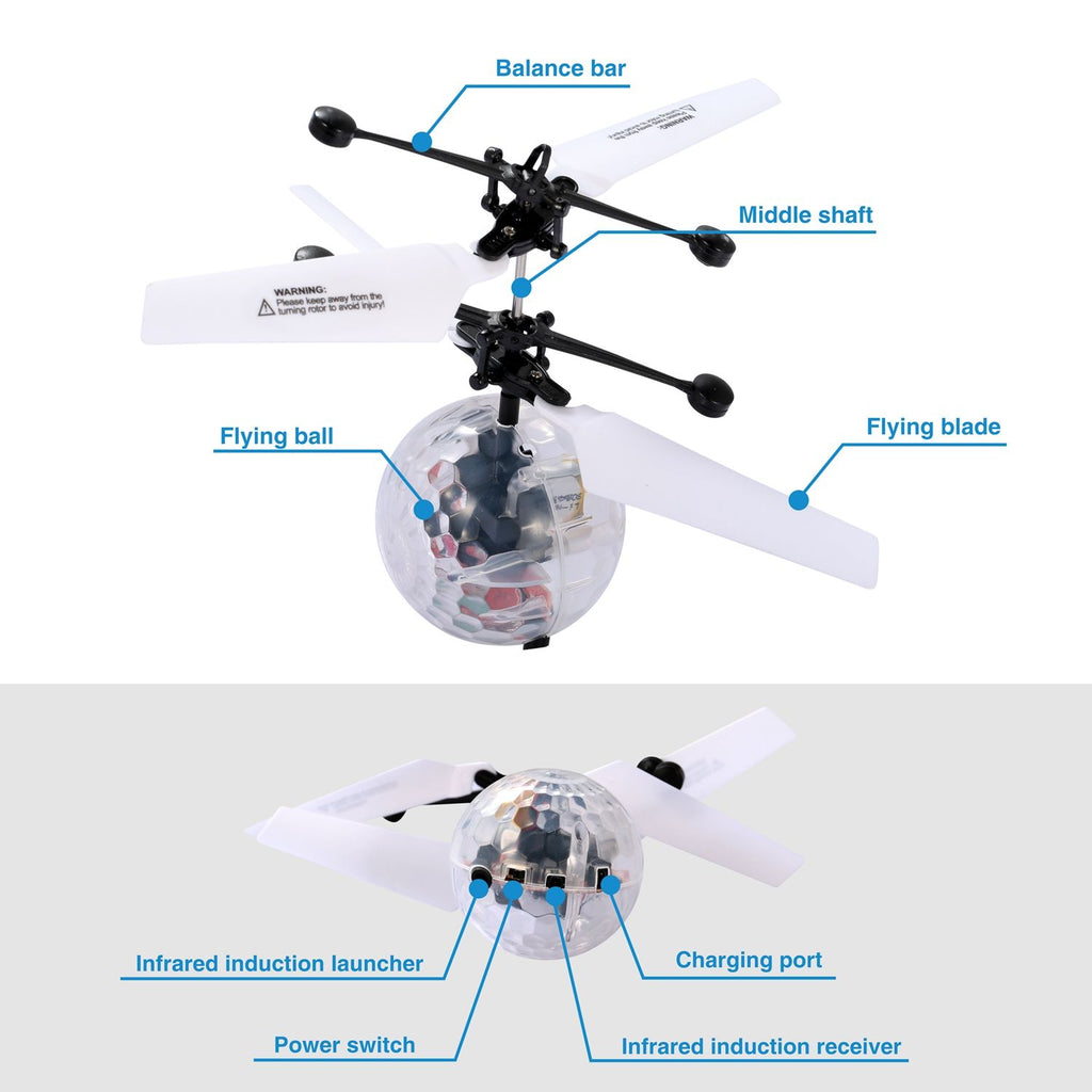 *Cool Shining LED Light*:Built-in 6 bright LEDs with 3 colors(blue; red and green); our cool flying bool will shine colorful lights while it is flying to successfully catch your children’s eyes.