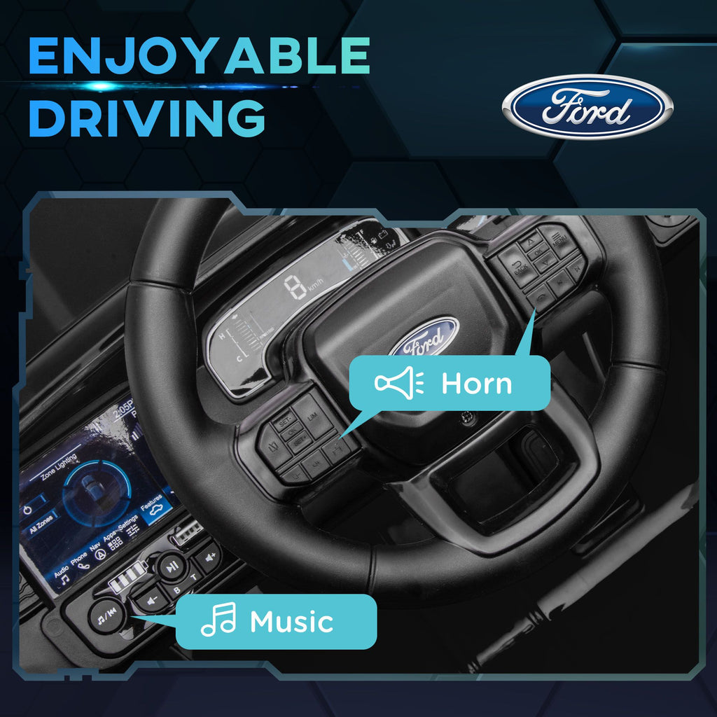 Yeah Depot - Qaba Ford Ranger Licensed 12V Kids Ride on Truck, Toddler Electric Car with Remote Control, Toy Storage, Spring Suspension, LED Headlights, Music Horn, for Ages 3-6 Years, Black