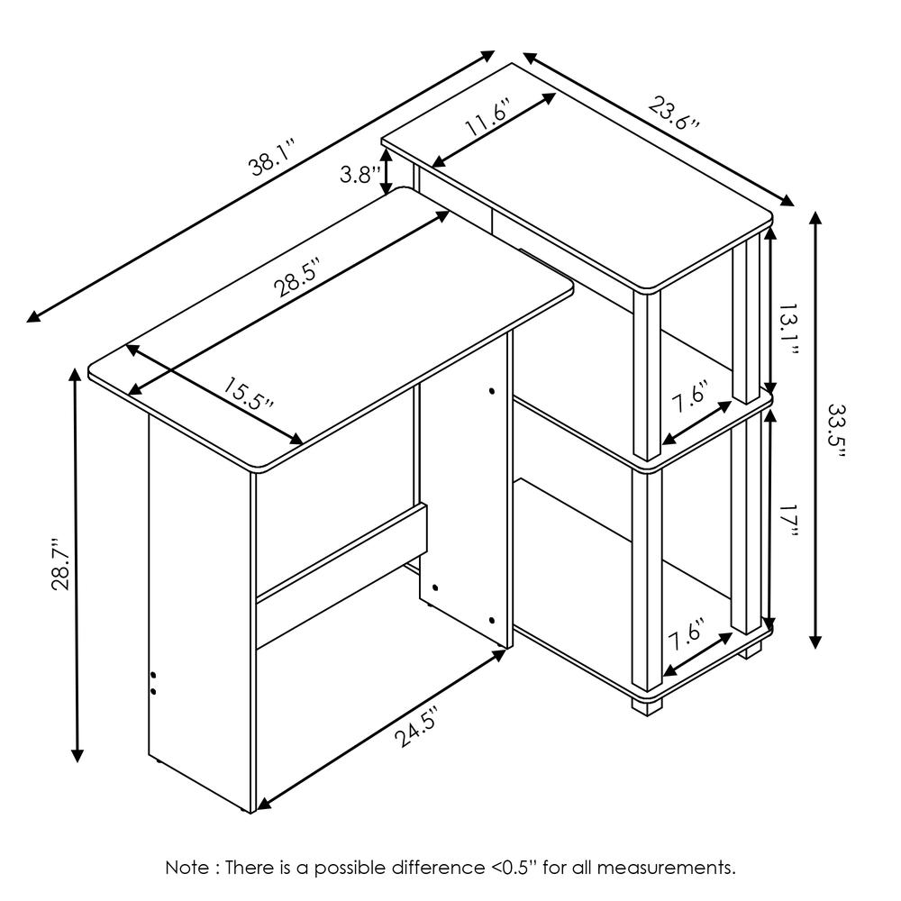 Furinno Abbott Corner Computer Desk with Bookshelf is made out of medium density fiber board which improves durability and increase the life span of the product. Additional space located at the side of the desk is available for storage and organization. The computer desk is perfect for apartments or dorms where space is limited. Large space is available for a desktop, magazines, books and other items. The assembly process is made easy with the provided parts and hardware. Assembly instructions are revised repeatedly to ensure that it is clear to read, simple to understand and safe to work. Care instruction: wipe clean with clean damped cloth and avoid using harsh chemical to prevent damage to the furniture. All the pictures are for illustration purposes only; decor items are not included in the set.
