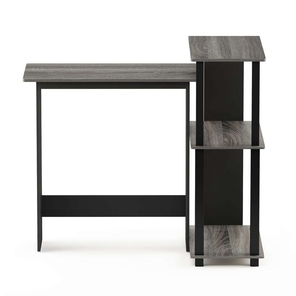 Abbott Corner Computer Desk with Bookshelf, French Oak Grey/Black, 16086R1GYW/BK - Furinno