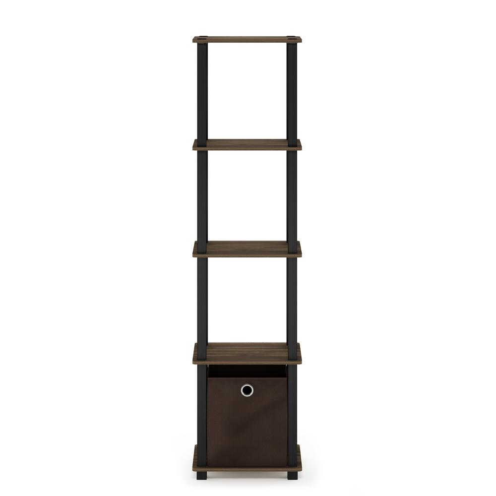 Furinno TNT No Tools 5-Tier Display Decorative Shelf with One Bin, Columbia Walnut/Black/Dark Brown