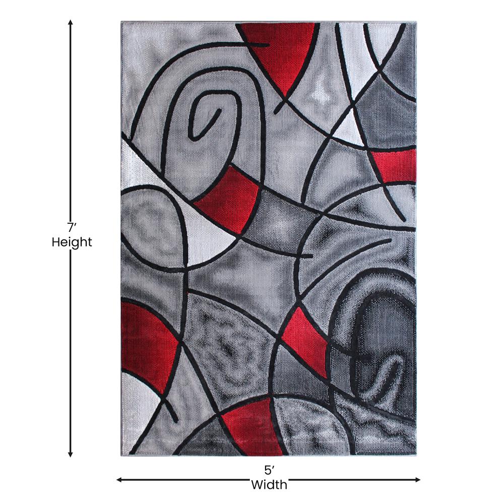 5' x 7' Red Abstract Area Rug - Olefin Rug - Living Room, Bedroom,, Family Room - Flash Furniture