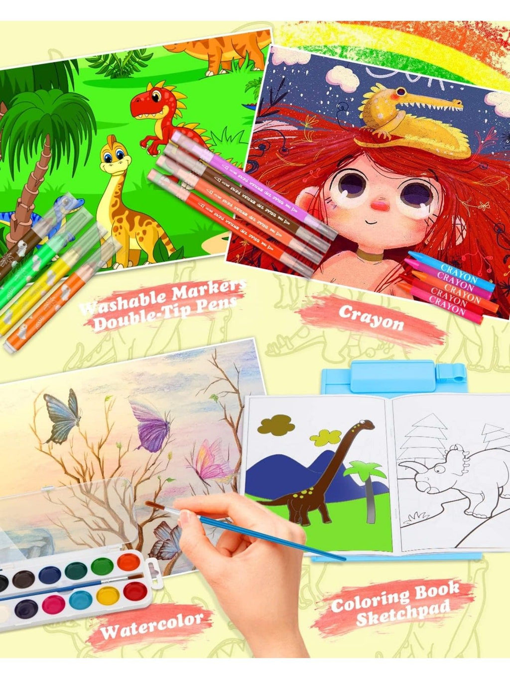 1.Dinosaur Art Box-Dinosaur art kits are included in this portable, high-quality box. The nice and fun cover attracts kids and inspires them to get their hands dirty. Every child is a little artist!