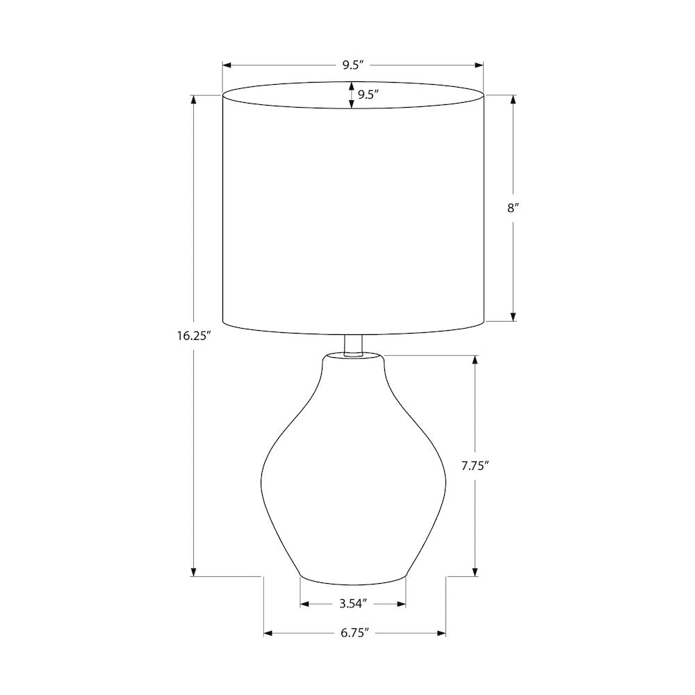 Illuminate and transform your living room, bedroom or office into a haven of style and comfort with our 16''h table lamp with a textured beige resin base. This fashionable and trendy contemporary piece is not just a source of lighting but a statement accent piece that helps to defines your interior decor. With a soft beige shade in a linen blend, it beautifully complements the lamp while enhancing the ambiance of any space. This lamp uses up to a 60W bulb (not included) and operates with a simple on/off turn knob switch, allowing you to easily brighten a room with a simple twist. With a 2 year limited warranty against manufacturer defects, you can confidently incorporate this decorative lamp into your home decor. Simply place the chic drum shade on top of the speckled, ginger jar shaped resin base and this table lamp will bring a stylish addition that promises to please even the most discerning tastes.