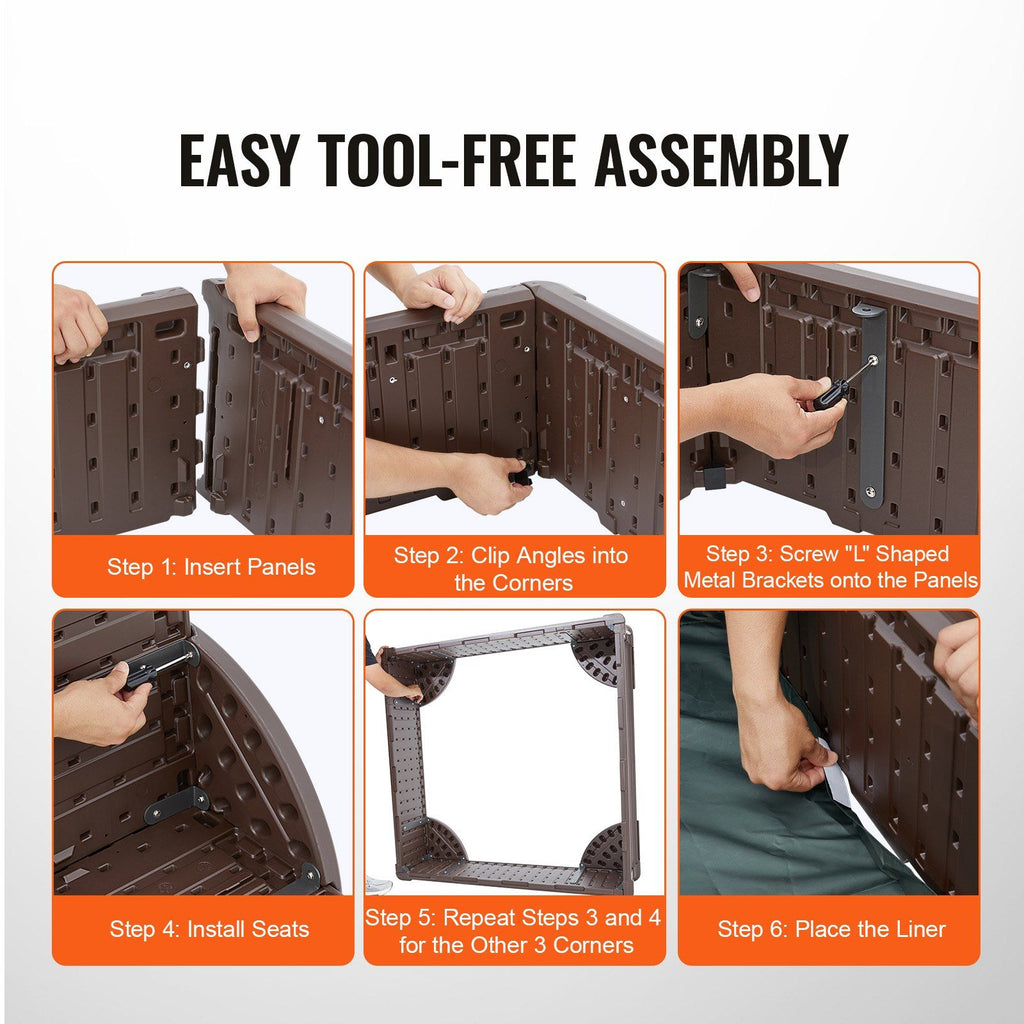 3.Easy Assembly: Our kids sandbox is easy to assemble with no tools required. Simply insert the panels into the slots, place the liner, and attach the seats. Clear installation instructions are included to help you create the perfect children's play space in no time.