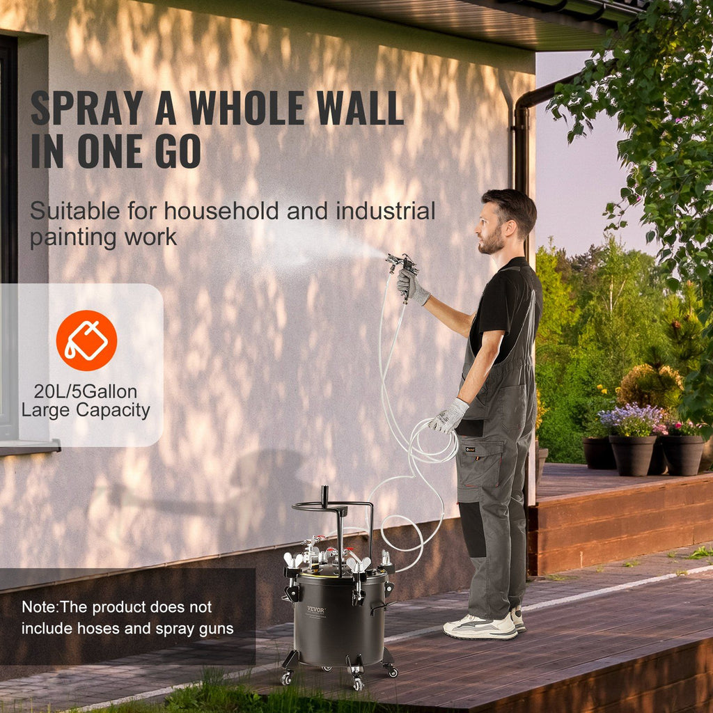 VEVOR Spray Paint Pressure Pot Tank 20L/5gal with Casters Leak Repair Sealant
