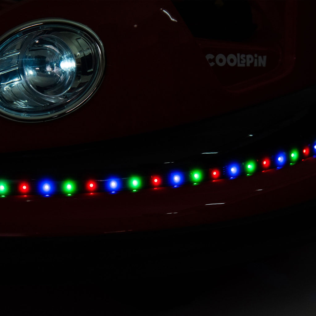 Bilateral Sequential Flashing Lights with Front LED Lights: Experience dynamic lighting effects with sequential flashing lights on both sides and prominent front LED lights.